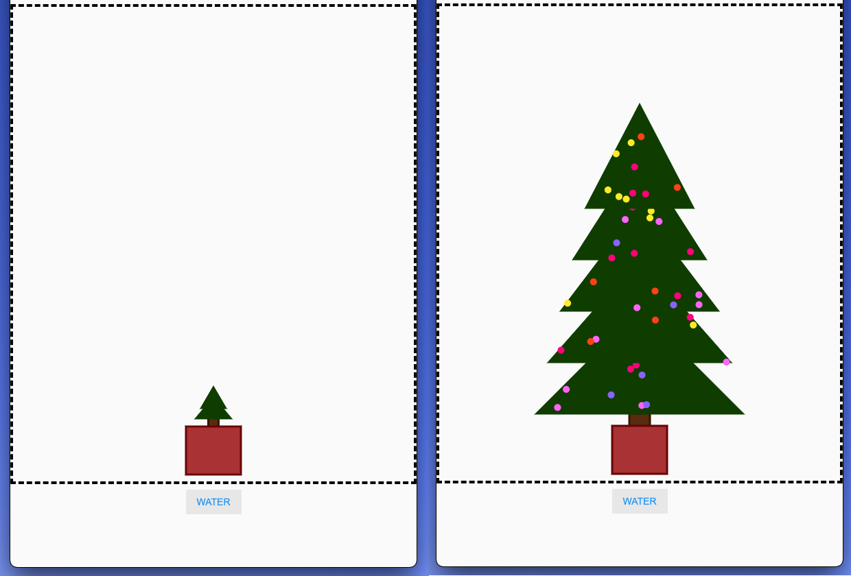 To make sure each user has their own tree, we store a small amount of data in local storage. For this app, we want to keep track of the number of times a tree has been watered, and the date and time of its most recent watering. Then depending on those pieces of information, we can calculate exactly how verdant (or withered) your tree ought to be.