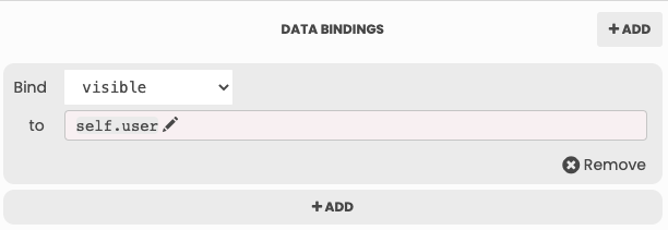 Finally, I added data bindings to the buttons from the Design page, to make them visible only when I have logged in.