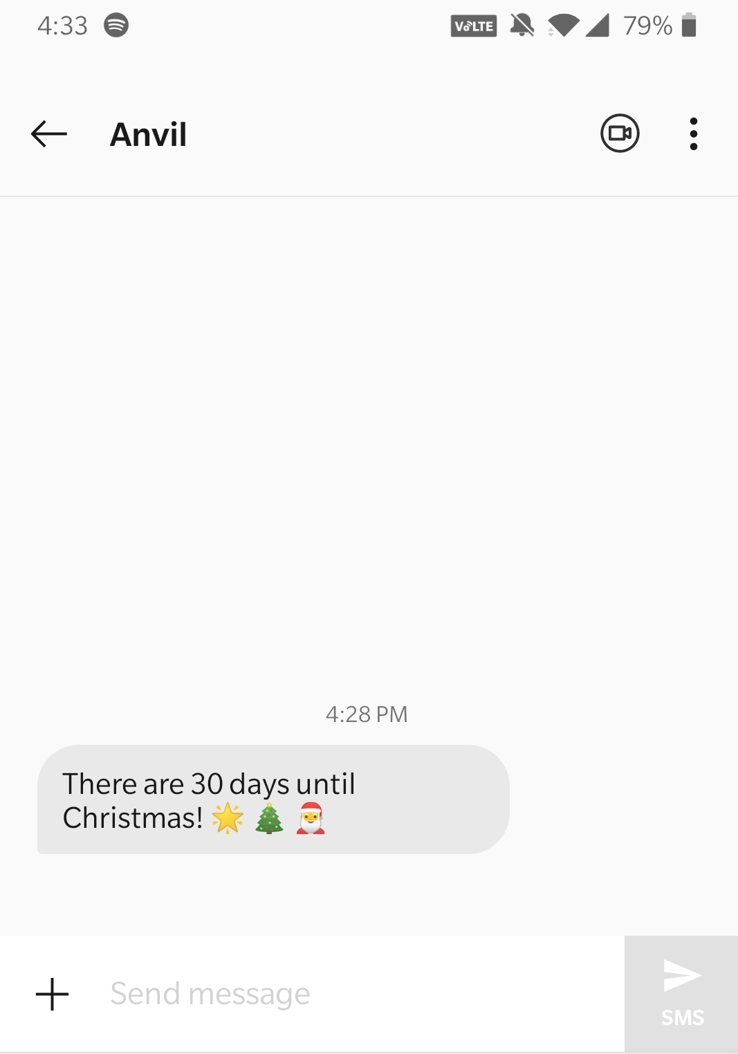 We’re already watching the calendar, thanks to advent day 3, and yesterday’s app. But, what if we could get a text message every day to let us know how close we are to Christmas? Wouldn’t that be lovely? No? Well, I’ve done it anyway.