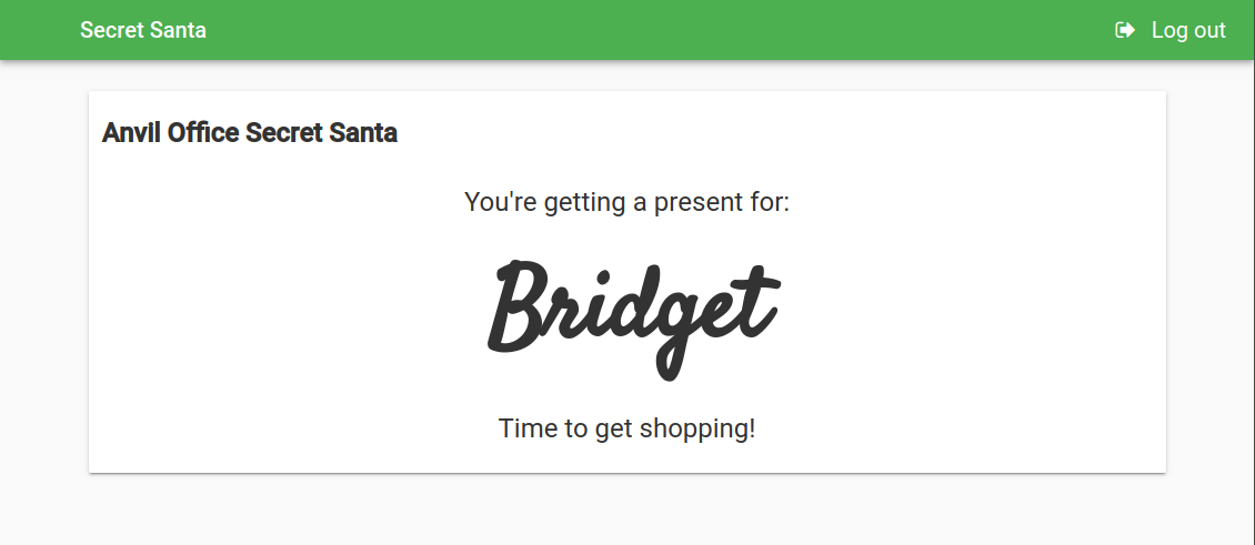 All we need to do is build a pretty front page, and publish it! You can visit the app yourself, at secret-santa.anvil.app: