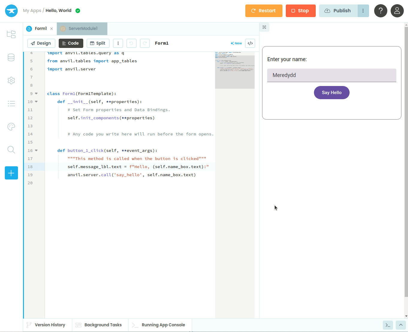 Build a data-entry app, and learn the techniques fundamental to building any Anvil app. In this tutorial, you will: