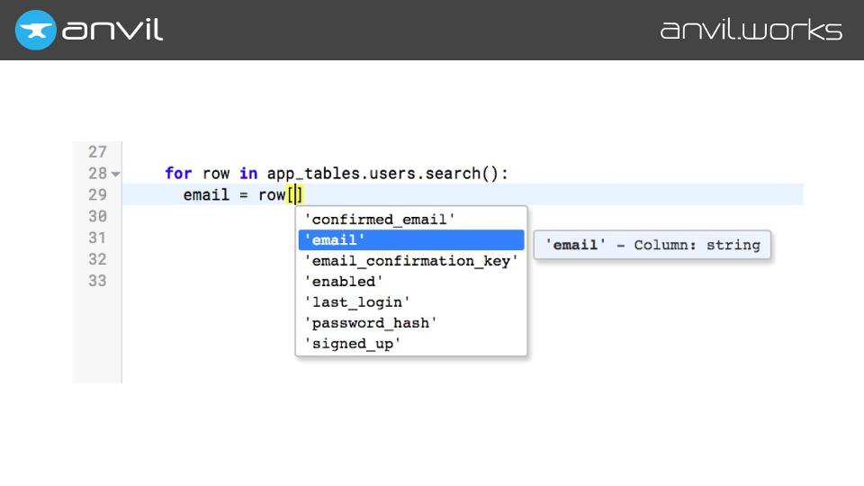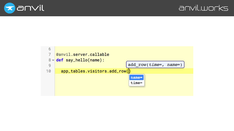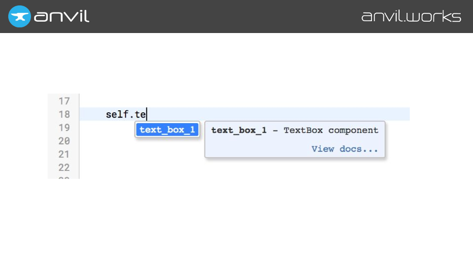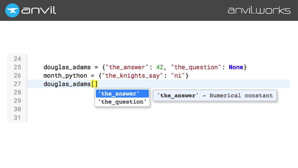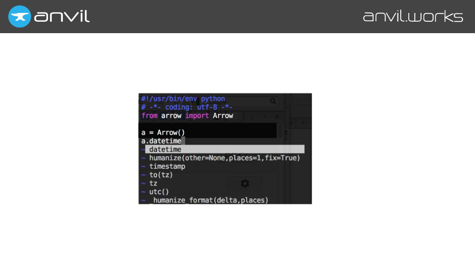 We make Anvil – it’s a tool for building full-stack web apps with nothing but Python. We did this because we think we can make a better developer experience using full Python than using the traditional tools. And autocompletion is part of that.