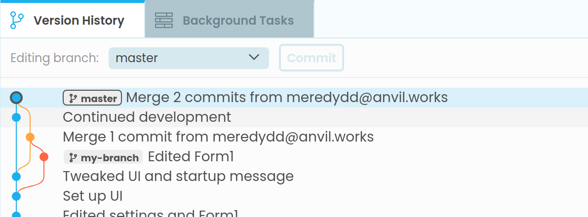 When component conflicts occur, Anvil “picks one side” of the merge, and displays those in the Designer (usually the changes that are already on the branch you’re merging into), and displays the conflicting changes in the Conflicts tab.