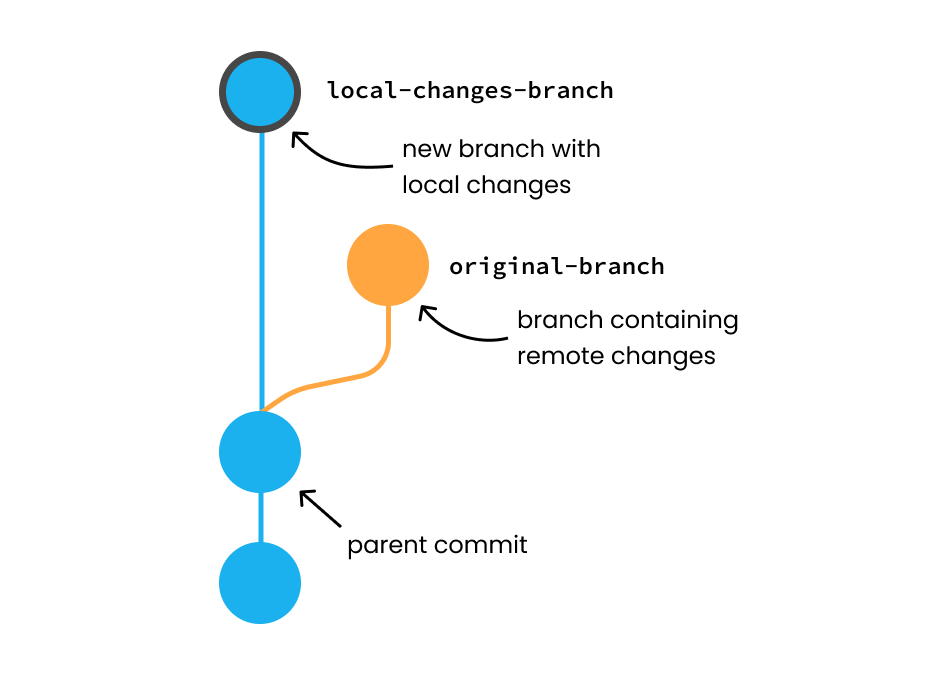 • Start a new branch just with your changes: This is the best option if you’re not sure what to do.