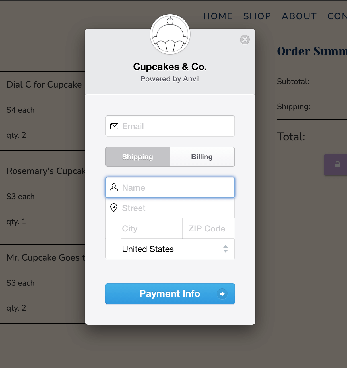 Purchases are made through Stripe. Clicking the “Checkout” button brings up a payment form. If the Stripe transaction is successful, the order is added to the orders Data Table and all other transaction information is stored by Stripe in your account.