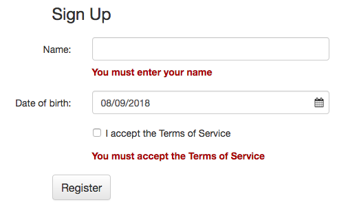 This library provides a module that checks the contents of components, and displays errors if the contents are invalid. It can also disable components such as submit buttons if the form is invalid.